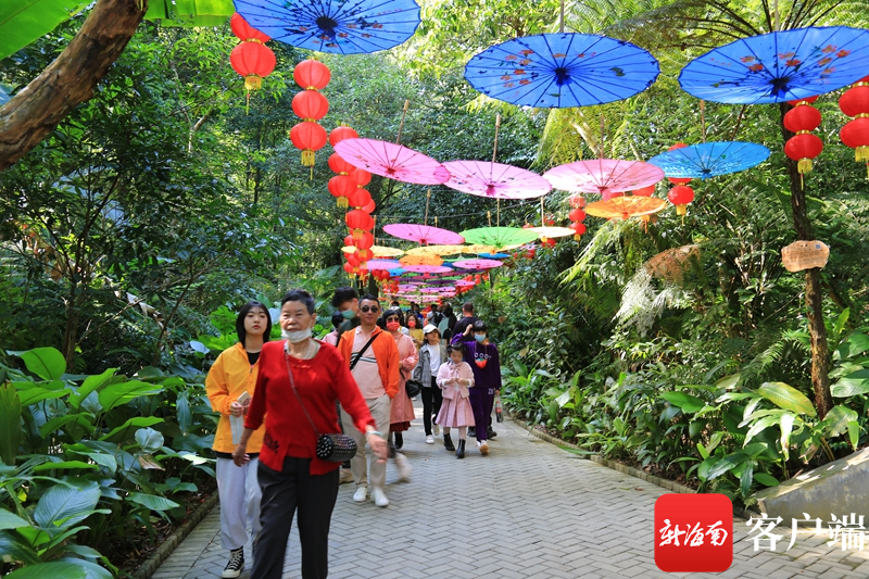 ?春節假期,海南百花嶺熱帶雨林文化旅游區游人如織。