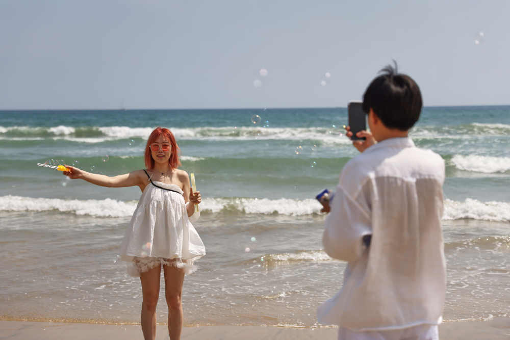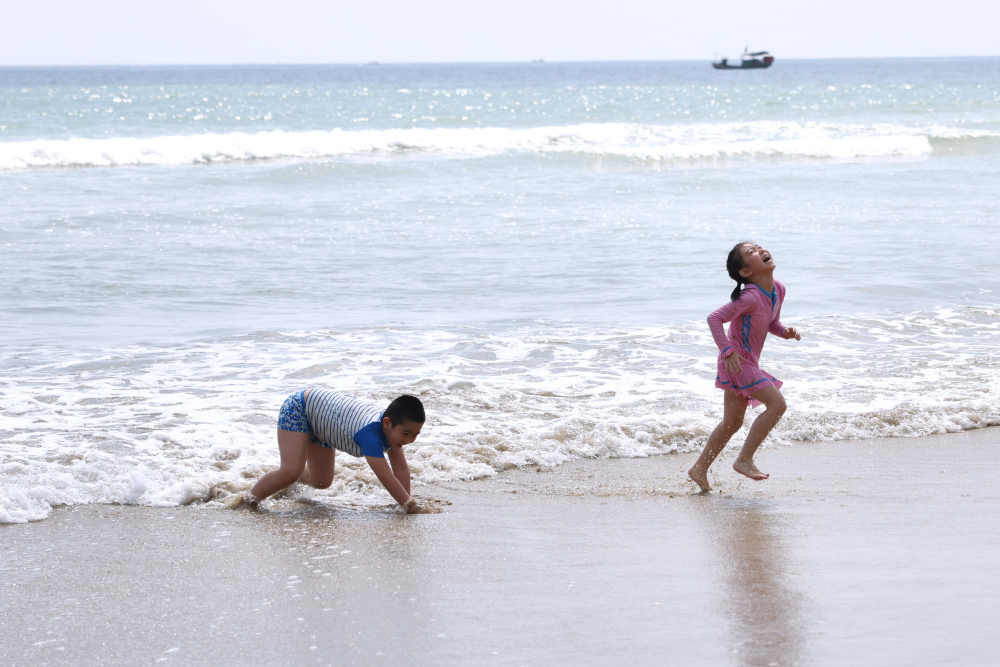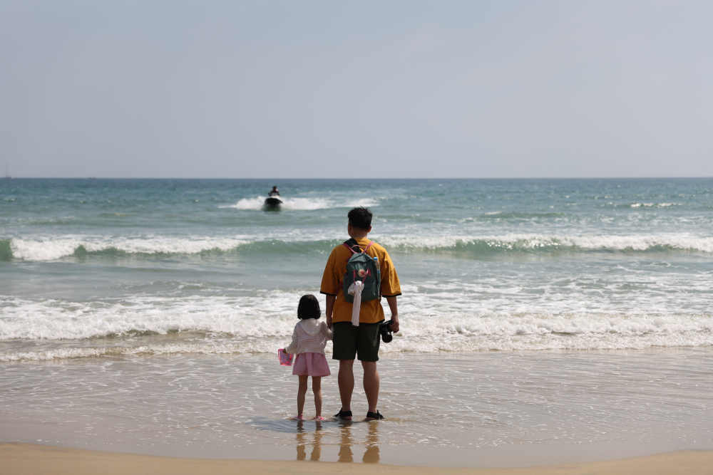 萬寧石梅灣:游客踏浪看海樂享假期