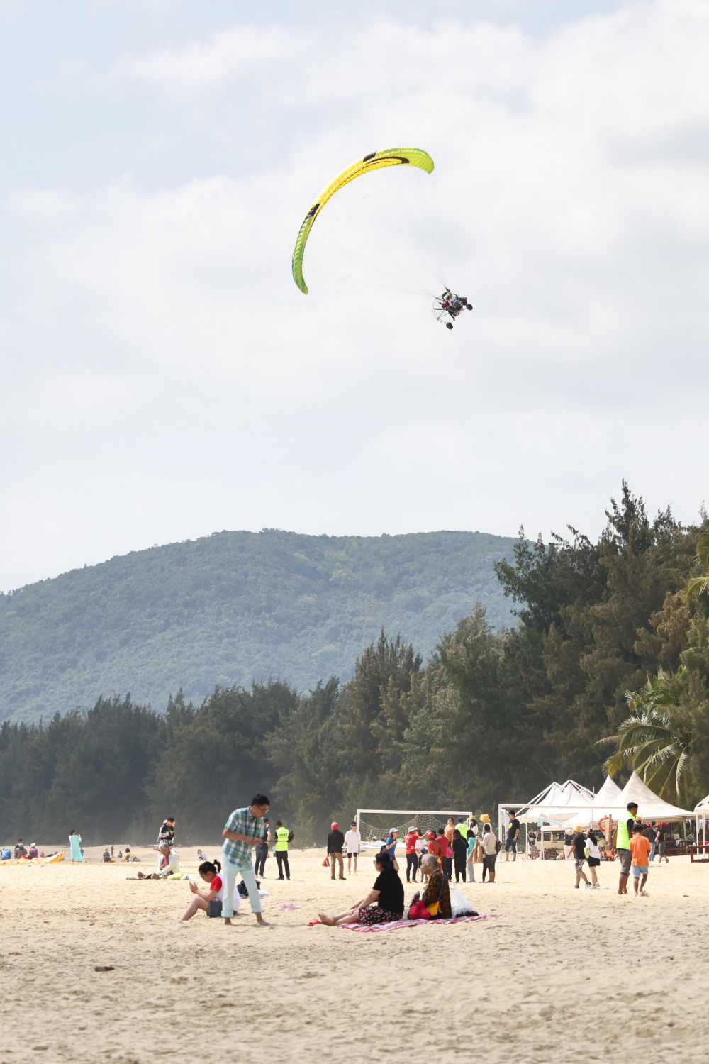 ↑2月21日,游客在海南萬寧石梅灣沙灘上休憩。