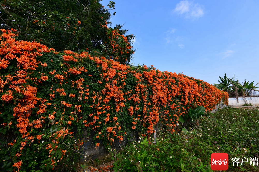 這里的圍墻上爬滿了炮仗花。