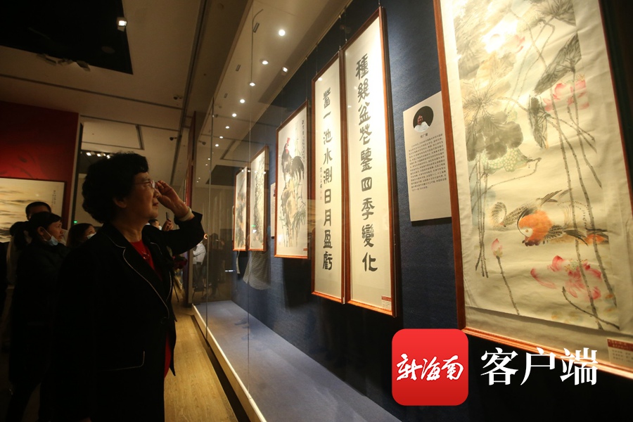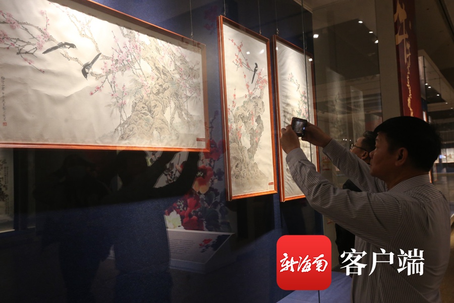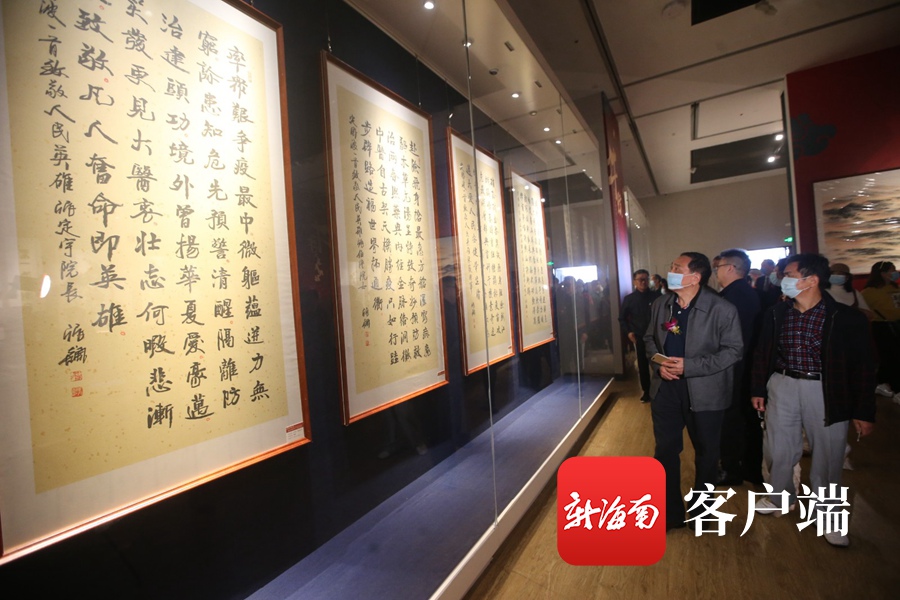 “珠崖碧綠繽紛艷·南天錦繡祥云飛——中國當代大師書畫展”在海南省博物館展出。記者陳望 攝
