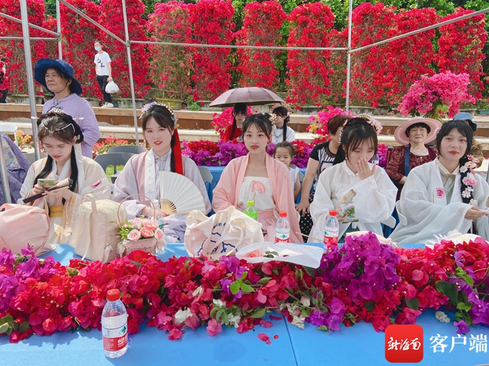 新海南客戶端、南海網、南國都市報3月20日消息(記者 孫春麗)3月20日,“中華花朝節”海南賽區系列活動暨瓊州漢服潮三角梅花藝花神賽在海口三角梅共享農莊開幕,本次活動主題為“花朝月夕花神現,萬紫千紅百花開”。活動以三角梅為主題,通過花藝花神賽事宣傳海南美麗的田園風光和三角梅文化內涵,更好地傳承傳統文化。