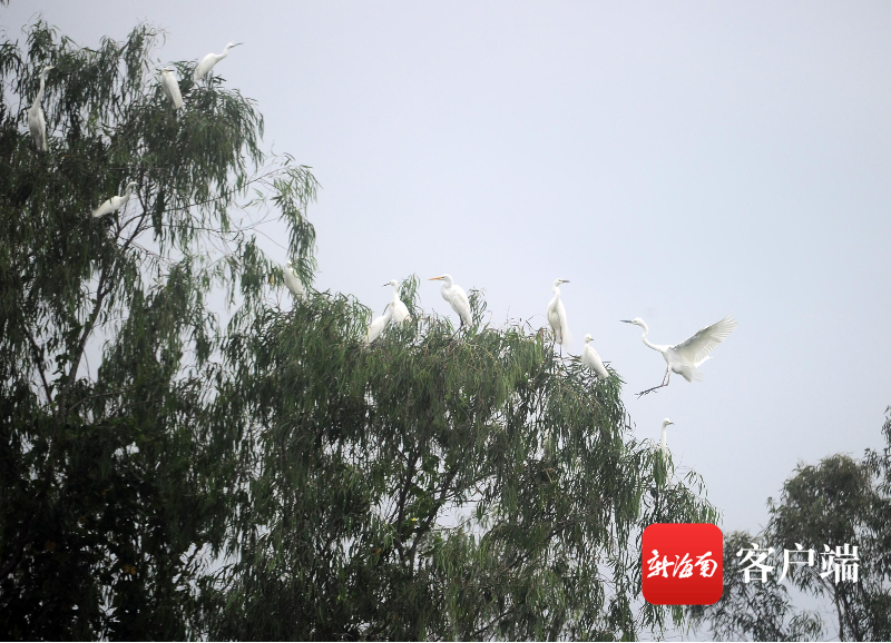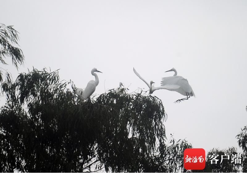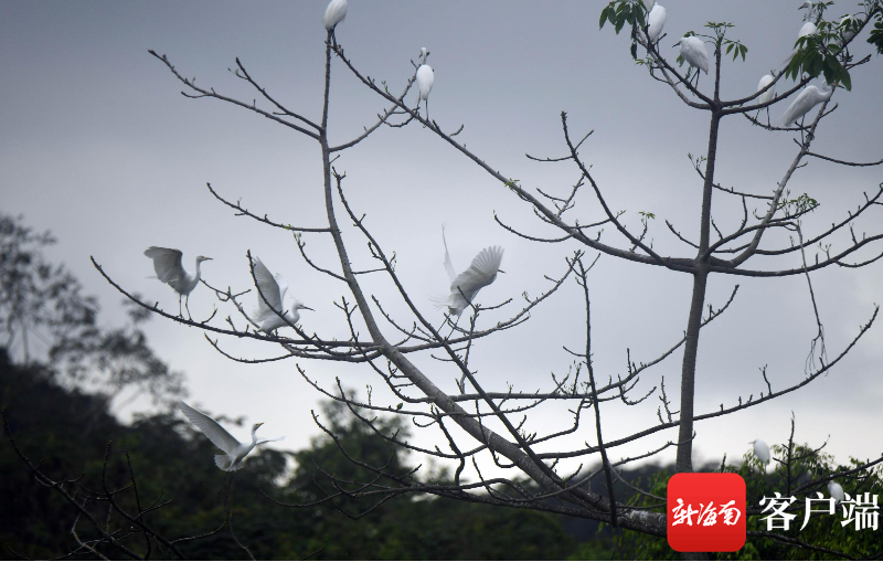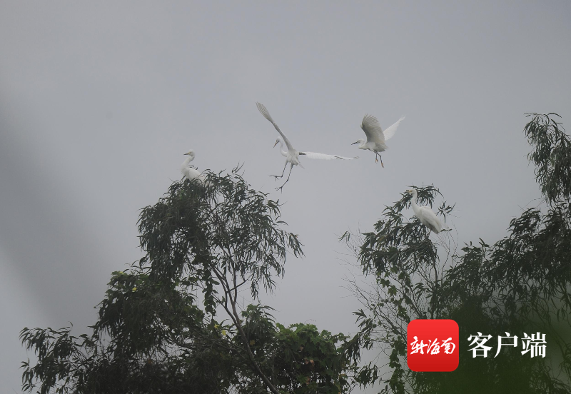 3月23日,三亞學(xué)院白鷺溪畔,白鷺在樹上棲息。記者 沙曉峰 攝