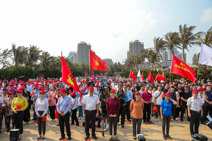 伴隨著出發(fā)的鳴槍聲, “重走紅軍路,發(fā)揚(yáng)瓊崖革命精神”紅色徒步之旅正式啟動(dòng)。參加徒步的市民、游客身著紅軍軍裝,揮舞紅旗,徒步解放海南島戰(zhàn)役海岸線,在碧海藍(lán)天下遙想當(dāng)年解放軍渡海作戰(zhàn)的艱辛,傳承紅色精神。