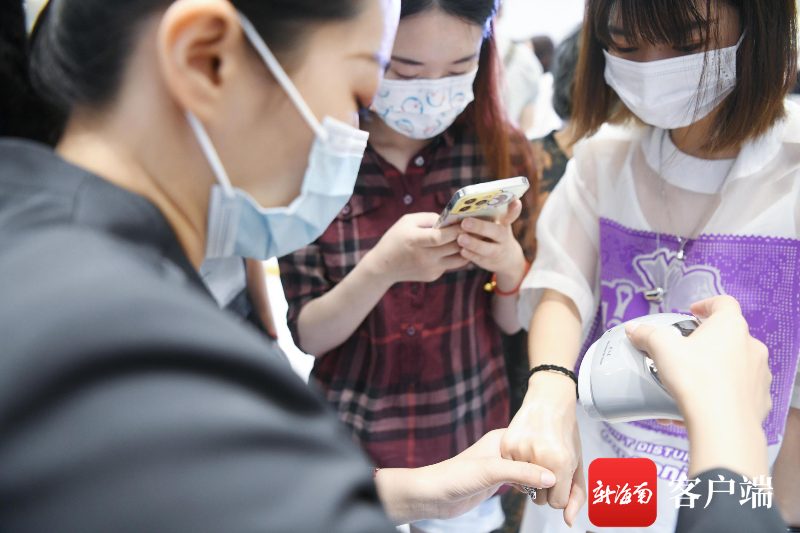 4月1日,游客在三亞海旅免稅城試用SENSAI絲光溢彩。記者 沙曉峰攝