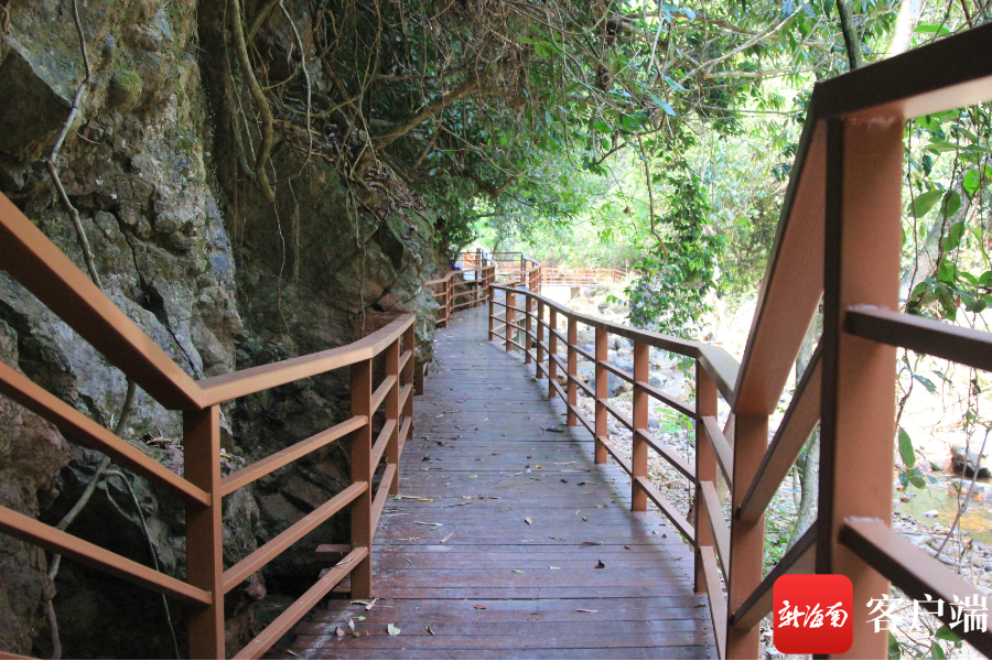 “棧道已經(jīng)完工,可以開放。”康學(xué)斌說,接下來,該項(xiàng)目還要繼續(xù)投資拓寬斷崖頂端的瀑布口及上游的南牛水庫庫容。因?yàn)樯嫌蔚乃畮焓冀ㄓ?0世紀(jì)70年代,蓄水量不大,“我們正在向瓊海市政府打報(bào)告申請第二期工程經(jīng)費(fèi),將水量蓄好,瀑布口水簾拉大,努力將把這個(gè)項(xiàng)目做好”。