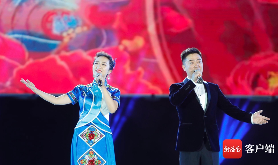 瓊中舉行“三月三”開幕式主題晚會,歌手在盡情歌唱。記者 汪承賢攝