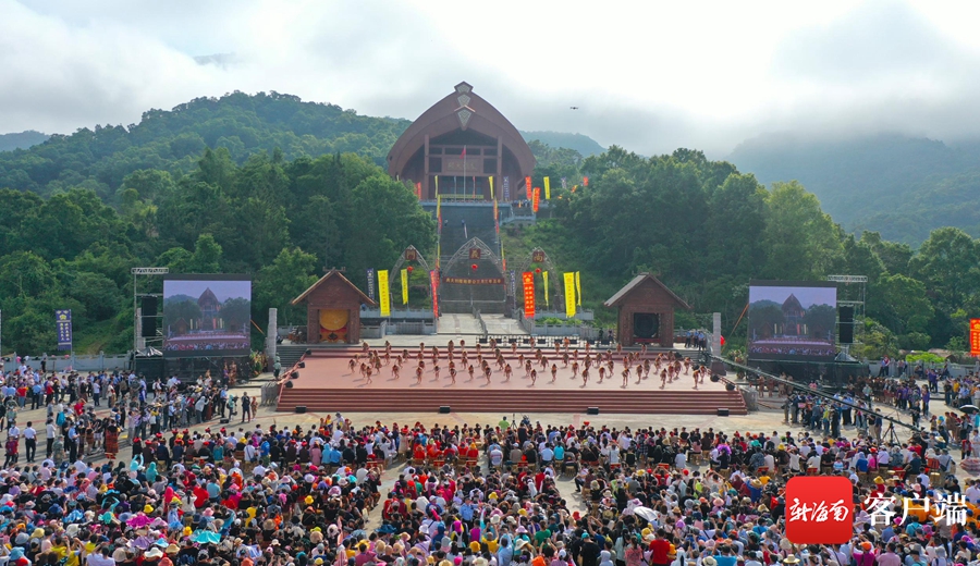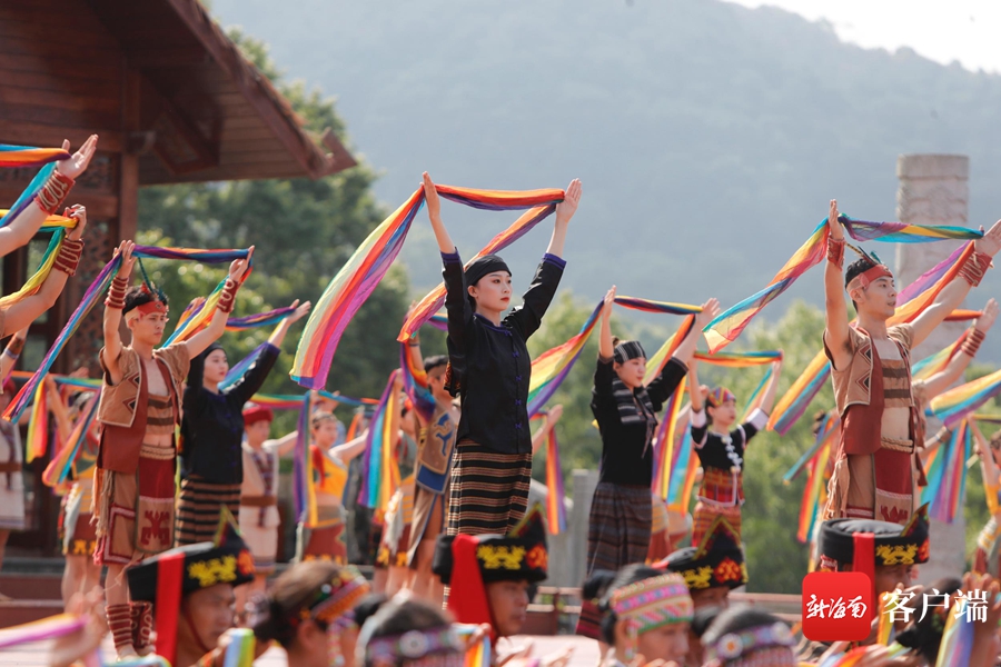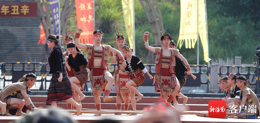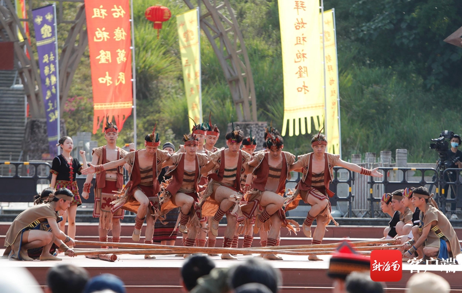 五指山市隆重舉行2021年祭祀袍隆扣大典,大典演出現場。記者 汪承賢攝