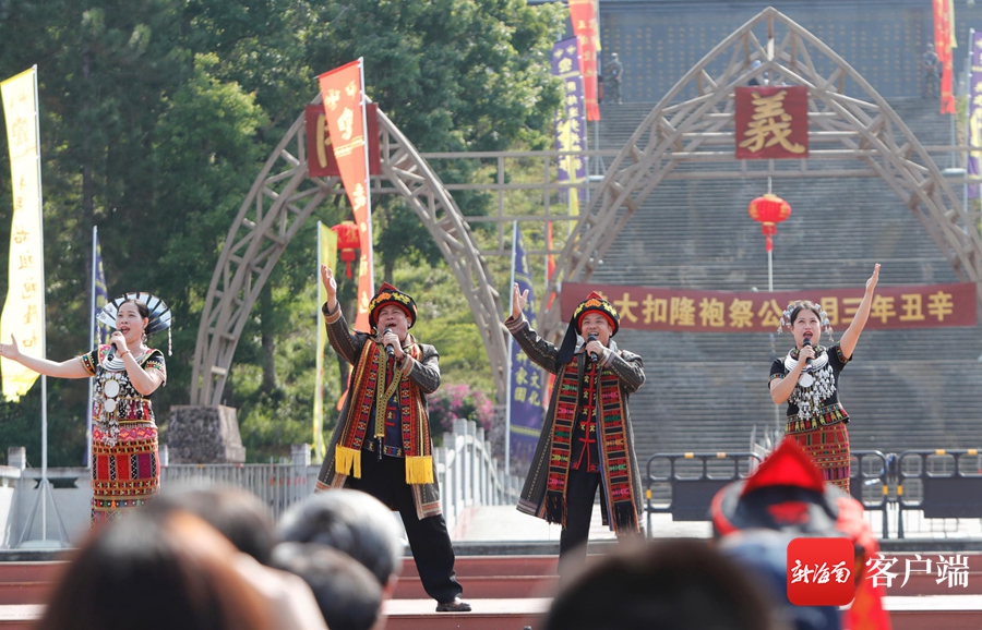 新海南客戶端、南海網、南國都市報4月14日消息(記者 石祖波)4月14日,農歷辛丑年三月初三,祭祀袍隆扣大典在海南省五指山市水滿鄉黎峒文化園隆重舉行。來自全省各市縣的黎族同胞和省內外各兄弟民族兒女齊聚一堂共同祭拜袍隆扣,緬懷先祖榮光。