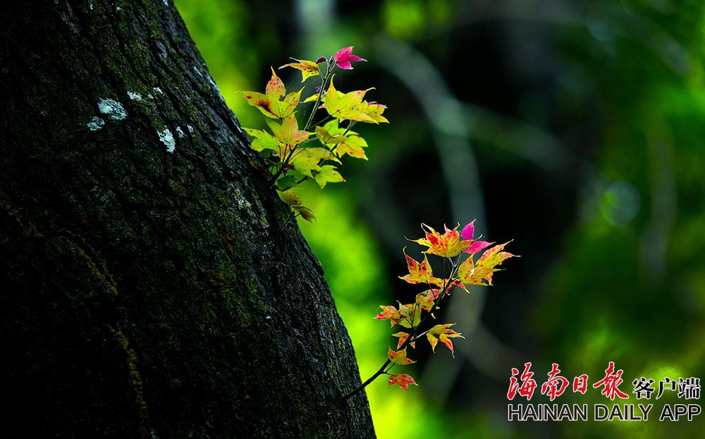?瓊中百花嶺一顆老楓香樹發出了新芽,嬌嫩的葉片呈現出紅、黃、綠等多種色彩。海南日報記者 蘇曉杰 攝