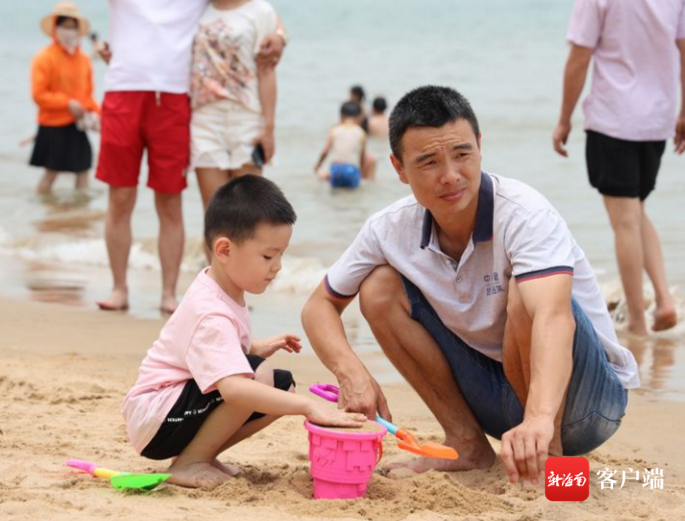 假日海灘許多市民游客在這里看大海,吹海風,小朋友可踏浪挖沙,同大人們玩水嬉戲,海面上揚帆出行的帆船,盡享假期休閑時光。記者 黨朝峰/攝