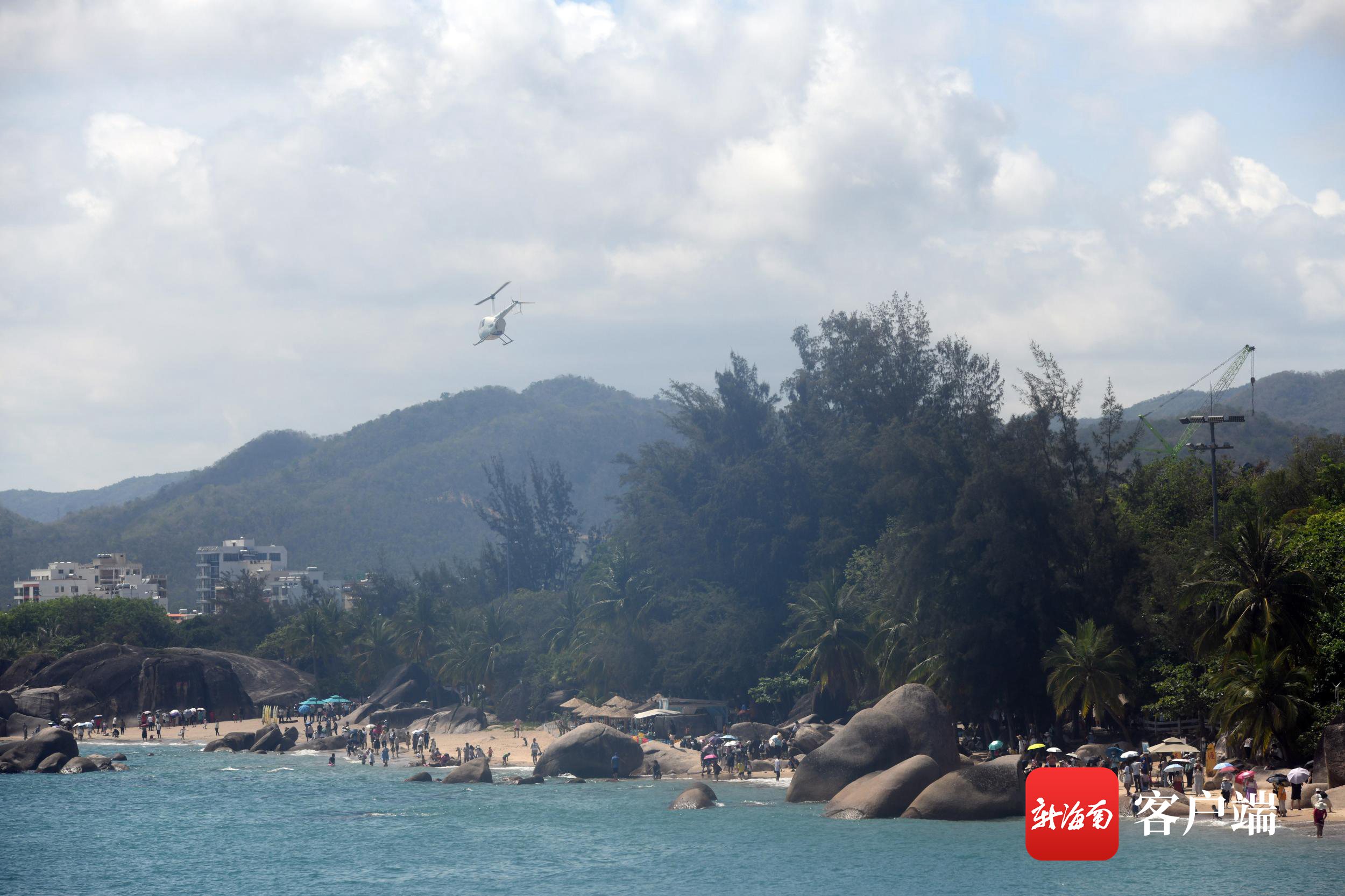 ?游玩在三亞海灘上航拍。記者 沙曉峰攝
