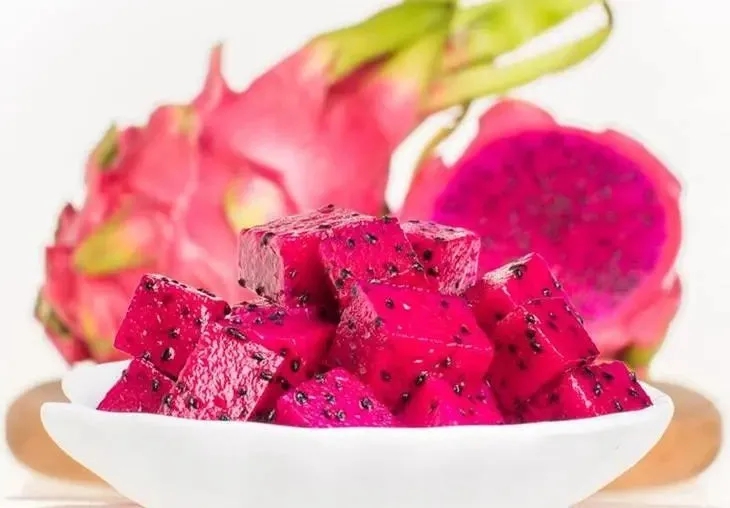 火龍果有兩個品種,一種是紅心的,另一種是白心的,紅心火龍果是人工培育的新品種。口感上,紅心火龍果比白心火龍果味道更甜、更軟糯,且富含花青素,具有很好的抗氧化作用和美容效果。