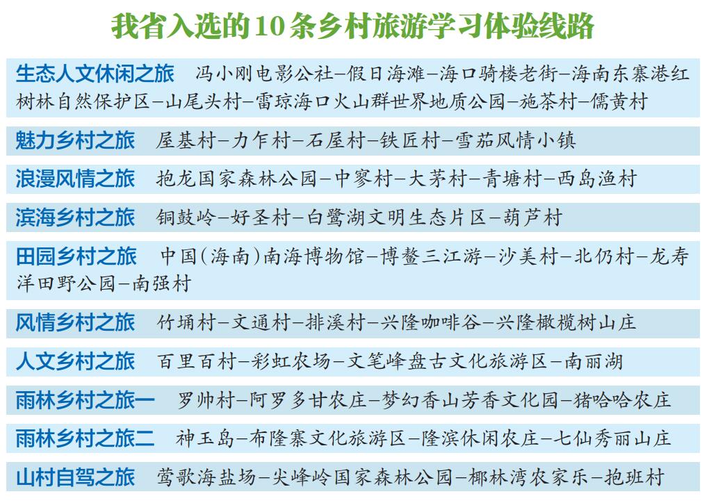 全國300條鄉(xiāng)村旅游學習體驗線路公布 海南10條線路入選