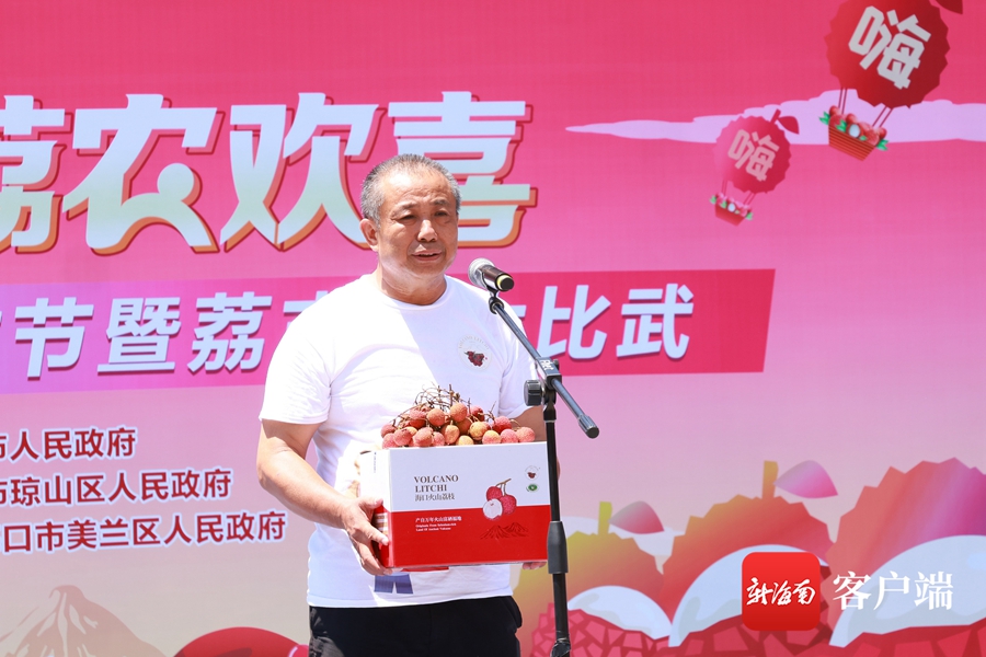 活動現場,10位“荔志叔”身穿火山荔枝主題文化T恤、手拿特色小道具,分別登臺展示自家種植的優質荔枝,用登臺“走秀”、個性化“比武宣言”的方式,上演了精彩熱鬧的??凇袄笾臼濉憋L采秀,分享荔枝豐收的喜悅,展現新時代??凇靶罗r人”風采。