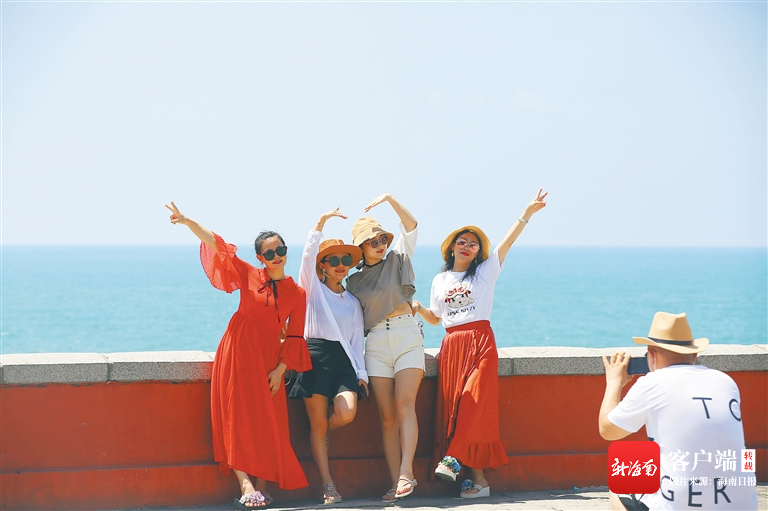 5月19日,在三亞南山文化旅游區游覽,游客以碧海藍天為背景,拍照留念。 本報記者 武威 特約記者 陳文武 圖/文