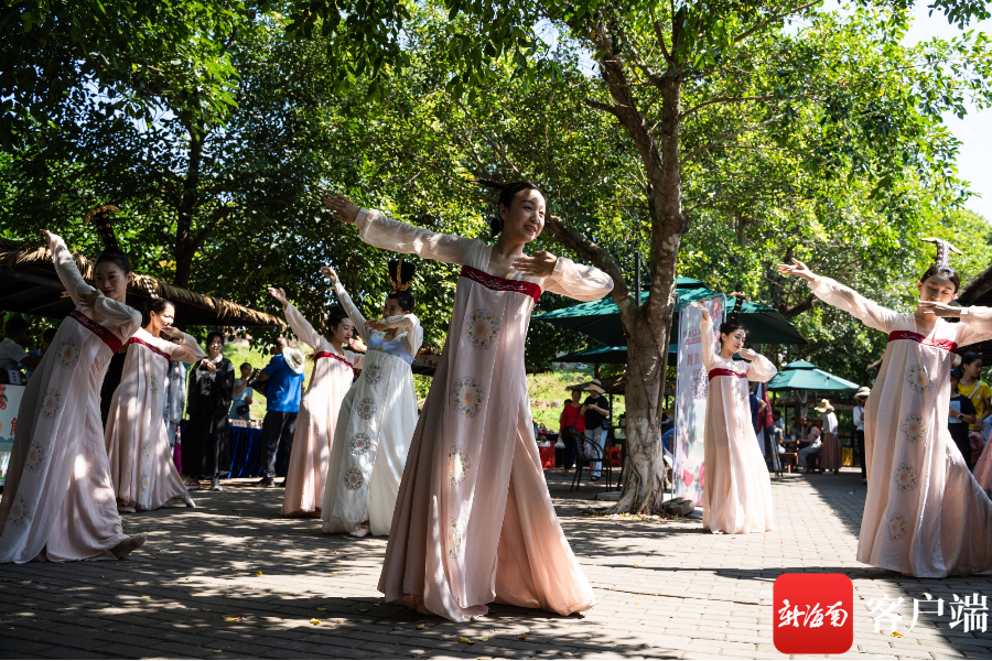 穿著國風服飾的小姐姐為市民游客進行跳舞表演。記者 李昊 攝
