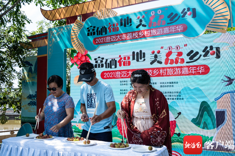 新海南客戶端、南海網、南國都市報5月23日消息(記者 李昊)5月22日,2021澄邁大豐荔枝鄉村旅游嘉年華在澄邁縣福豐約亭古鎮鄉村旅游點舉行?;顒右浴?富硒福地 美‘荔’鄉約 ”為主題,結合大豐荔枝采摘及澄邁特色鄉村旅游景點,融入國潮國風元素,讓市民游客感受到了一場與眾不同的鄉村荔枝國潮盛宴。