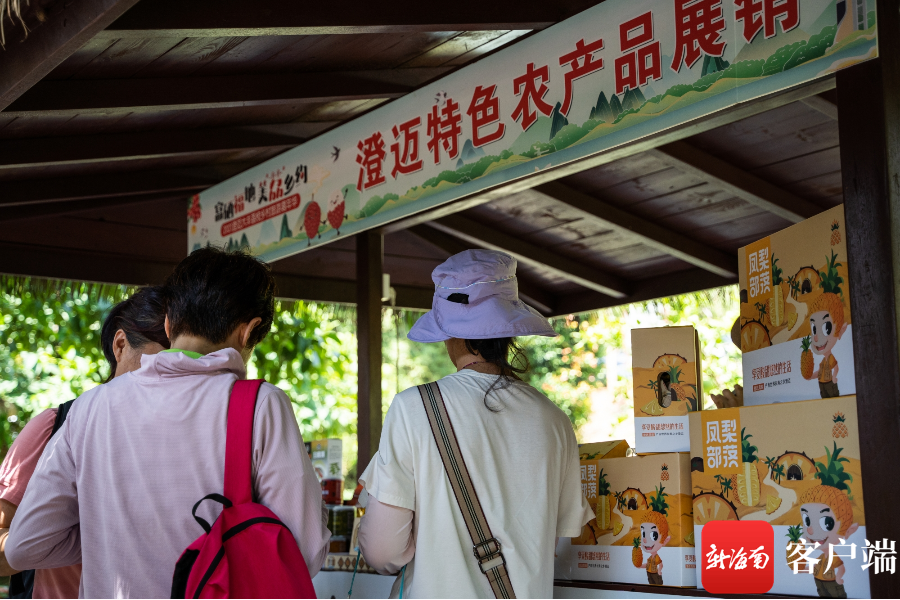 在澄邁農特產品展銷攤位上,大豐荔枝、澄邁鳳梨酥、橋頭地瓜、瑞溪牛肉干、粽子等農特產品受到游客青睞。
