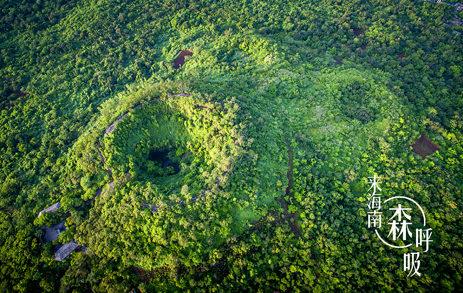 航拍郁郁蔥蔥的海口石山火山群世界地質公園。海南日報記者 李幸璜 攝