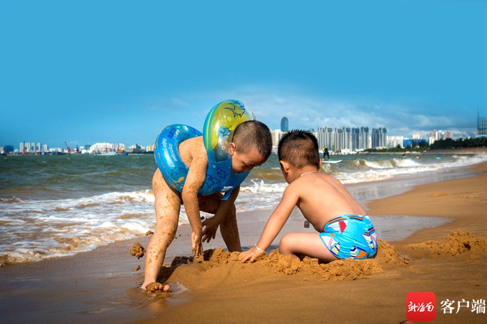 市民游客攜家帶口來到海口假日海灘,或漫步沙灘、或乘風破浪。海口日報記者 石中華 攝