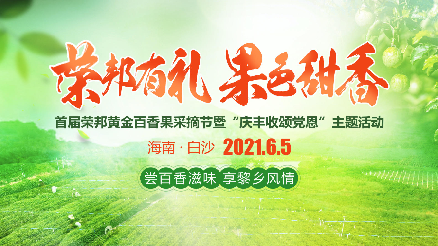 新海南客戶端、南海網、南國都市報6月5日消息(記者 韓星)果園課堂+技術培訓、采摘體驗游、果園直播帶貨、農夫集市……6月5日上午,“榮邦有禮·果色甜香”2021首屆榮邦黃金百香果采摘節暨“慶豐收頌黨恩”主題活動在白沙黎族自治縣榮邦鄉正式啟幕。正值豐收季,百香果飄香,一系列主題活動圍繞榮邦百香果展開。
