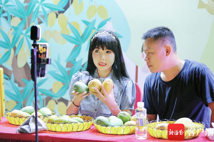 直播現(xiàn)場(chǎng)帶貨,為昌江芒果“打call”。昌江旅文局供圖