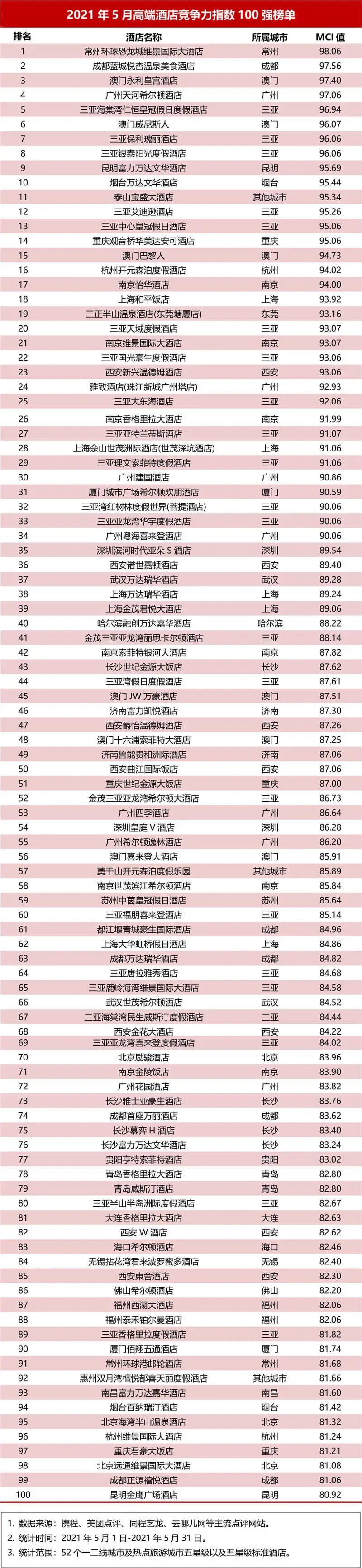 2021年5月高端酒店百強榜單發布 三亞22家酒店上榜!