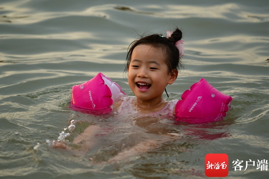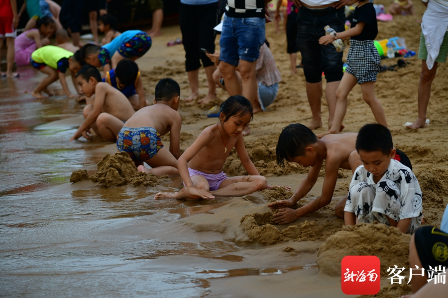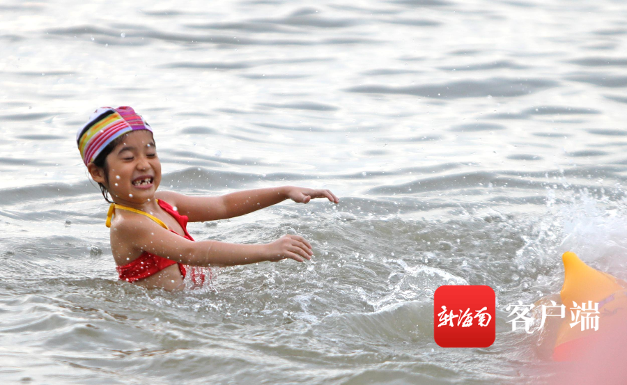 孩子們在假日海灘“洗龍水”。記者 汪承賢攝