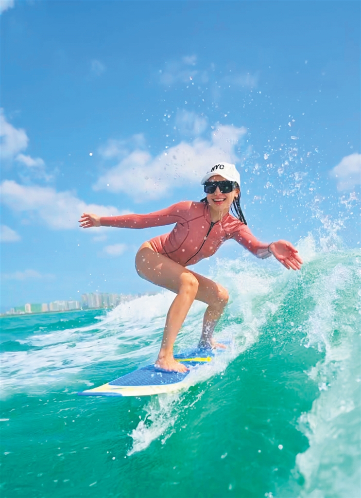 △在三亞體驗尾波沖浪的游客。(三亞正手浪尾波沖浪俱樂部供圖)