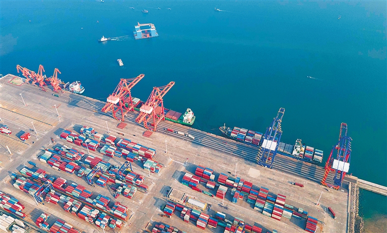 △洋浦經濟開發區小鏟灘碼頭一派繁忙。海南自貿港啟動建設一周年,以“中國洋浦港”為船籍港開展國際登記船舶數量從無到有,新增登記船舶28艘,新增國際運力約475萬載重噸,占全國新增國際運力的32%。海南日報記者 陳元才 攝