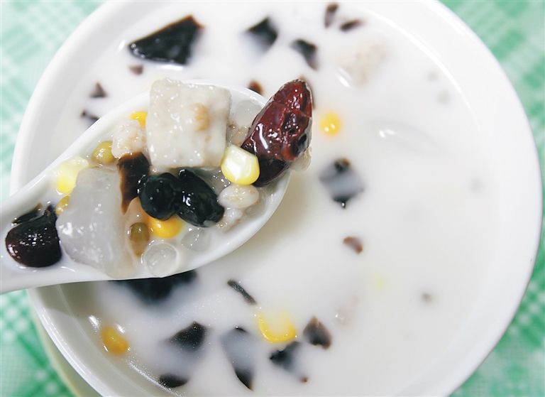 在海南,清補涼是很受歡迎的。漫步在老街上,總會看到很多賣清補涼的攤點,綠的、黃的、紅的、白的……豐富的食材,配上清涼的椰汁或者糖水,爽滑潤喉的口感,頓時讓暑意消了一半。如果再配上了一粒冰淇淋球,甜而不膩,滿滿的幸福感,便在舌尖蕩漾開來。