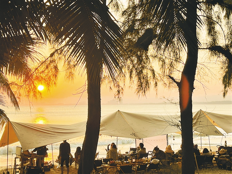 △三亞灣椰夢長廊,拍夕陽的人。海南日報記者 封爍 攝