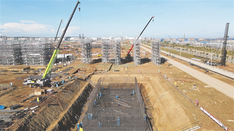△洋浦經濟開發區海南煉化百萬噸乙烯項目施工現場熱火朝天。項目竣工投產后將直接拉動超1000億元的下游產業,助力海南自貿港建設。海南日報記者 陳元才 攝