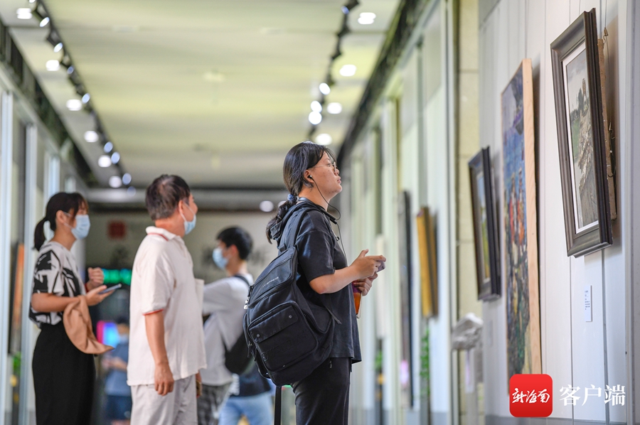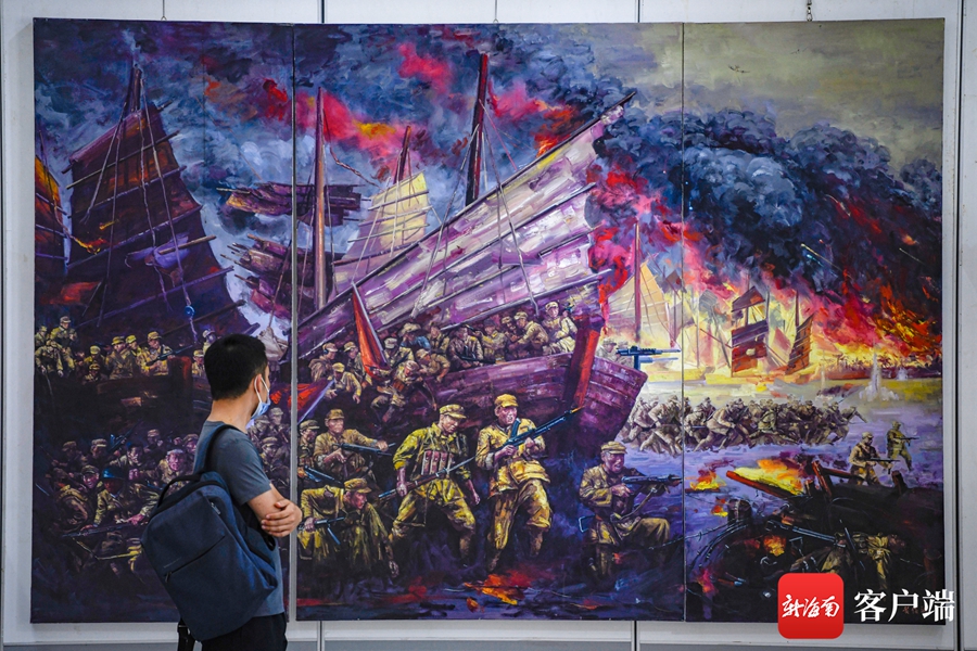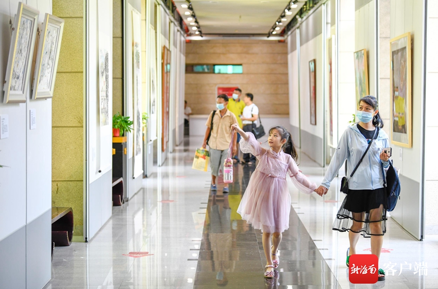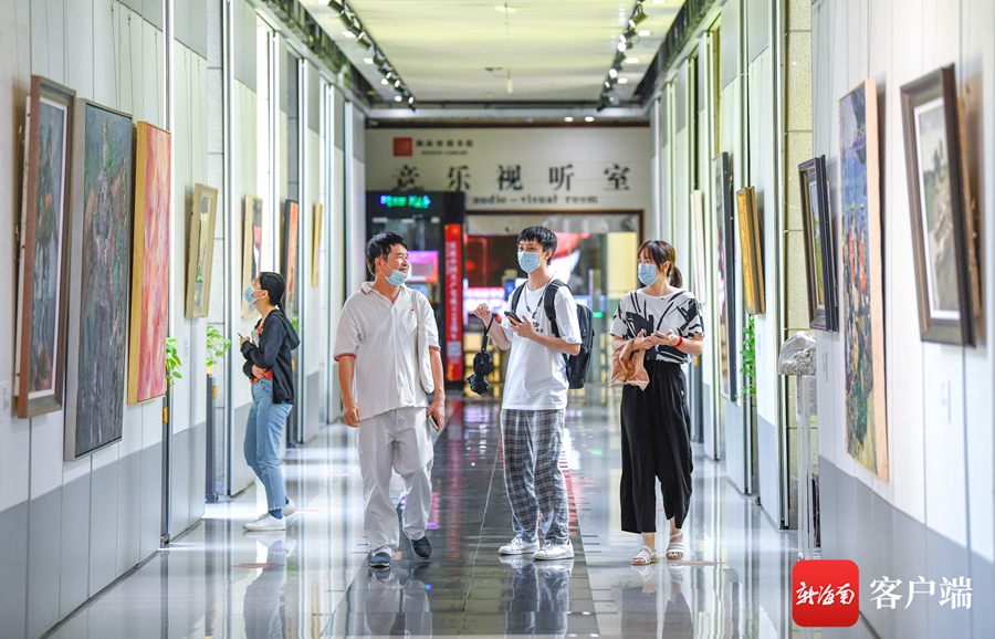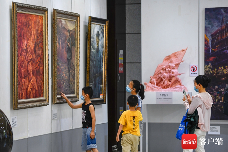 ?7月1日,“慶祝中國共產黨成立100周年”紅色經典美術作品展在海南省圖書館一樓展廳及正門廣場舉行。記者 李昊 攝
