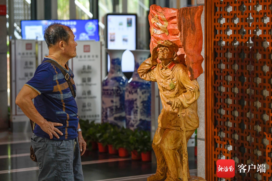 7月1日,“慶祝中國共產黨成立100周年”紅色經典美術作品展在海南省圖書館一樓展廳及正門廣場舉行。記者 李昊 攝