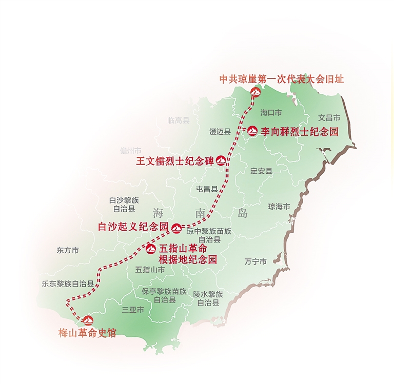 從中共瓊崖第一次代表大會舊址,到李向群烈士紀念園,再到王文儒烈士紀念碑、白沙起義紀念園……中國共產黨建黨百年之際,不如沿著那些閃光的足跡,通過“打卡”一個個紅色地標,再次重溫建黨百年的崢嶸歲月,在山鄉巨變中見證中國共產黨人的初心。