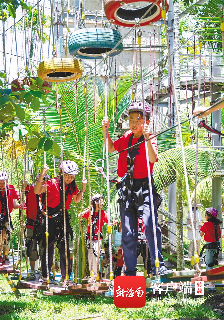 7月11日,甘肅蘭州碧桂園學(xué)校的學(xué)生在海南呀諾達(dá)雨林文化旅游區(qū)進(jìn)行雨林拓展活動(dòng)。