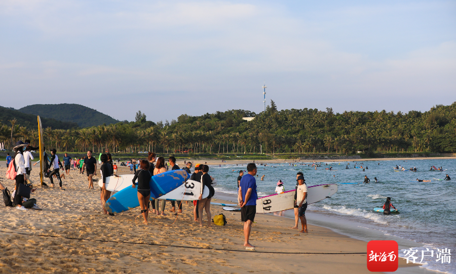 新海南客戶端、南海網、南國都市報7月17日消息(記者 李昊)站在海邊,放眼望去,好浪連綿。上百只沖浪板隨著波濤起起伏伏,而沙灘上,游人更密?;驔_浪,或觀看,或練習,整個海灣歡聲笑語不斷,浪尖起舞一定有著不一樣的樂趣。7月17日,參加“海南奮進 世界共享”——2021海南自由貿易港建設總體方案發布一周年全媒體海南行暨交流推介活動的嘉賓們來到萬寧日月灣,近距離感受因沖浪火爆出圈的魅力海灣。