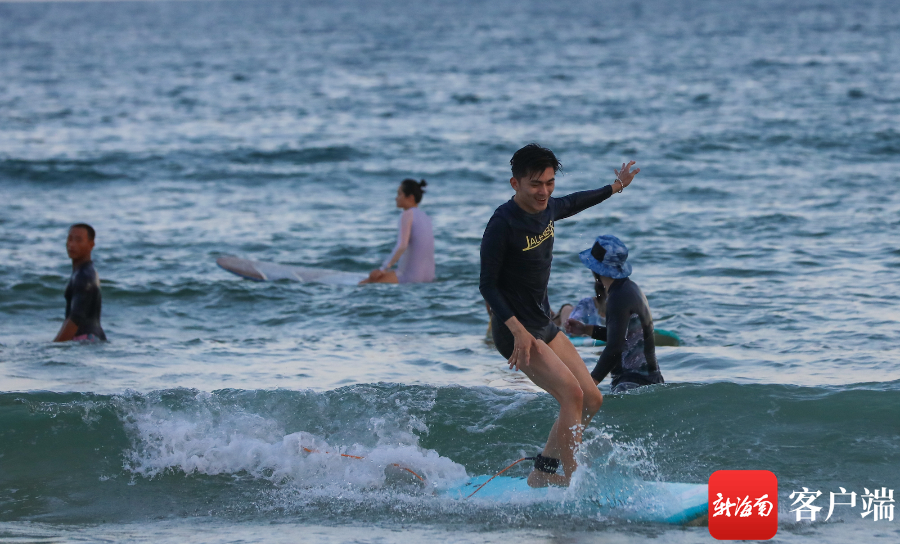 組圖丨體驗一把!全國媒體團打卡沖浪“火爆出圈”萬寧日月灣