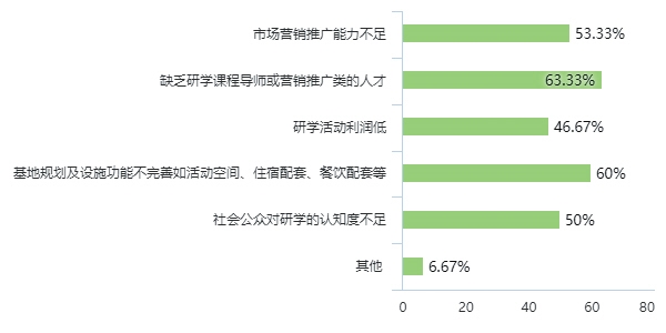3.接待能力:島內研學基地接待能力和狀況良好,而島外團體占總接待量不到10%的基地有半數,島外聯動不足,仍需繼續開拓島外市場。
