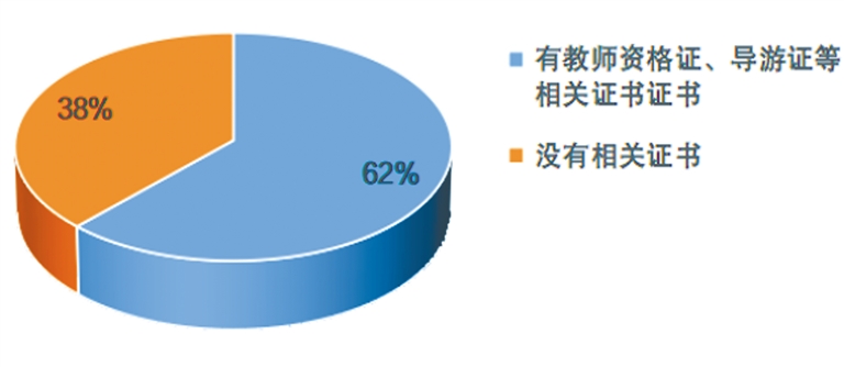 3.相關資質:基地、機構內的研學導師從業資質情況較好,但是仍有1/3左右的沒有任何資格證。