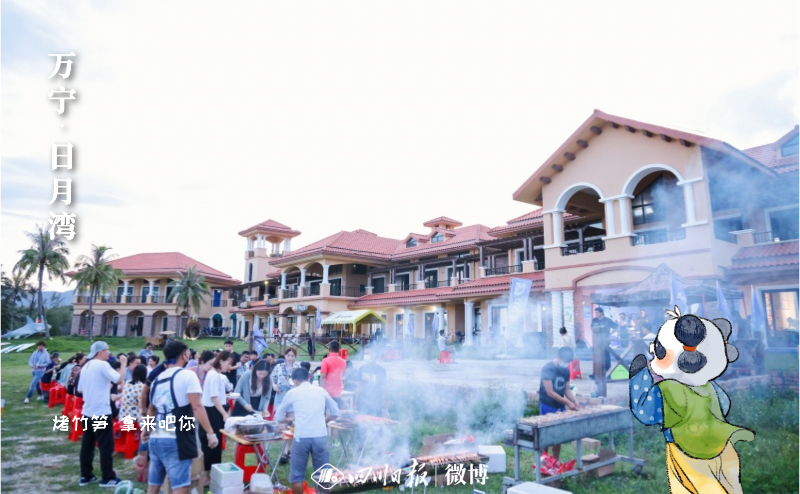 為了參加這次活動,川川和川寶7月16日下午到達??诿捞m機場。此后川寶在川川的帶領下探訪美麗鄉村瓊海南強村吃水果,幫新朋友拍照;來到獲譽“海南最美書店”的萬寧鳳凰九里書屋看書;石梅灣乘帆船出海參觀加井島;在沖浪勝地日月灣海邊燒烤;走進儋州和松濤水庫合影比“酷”;頑皮的川川還跑到中國最美鄉村瓊中什寒村偷騎村民小摩托;篝火晚會上和大家載歌載舞……前兩天的行程,川川從北到南深入???、瓊海、萬寧、儋州、瓊中等地,實地體驗海南自貿港建設的新面貌。