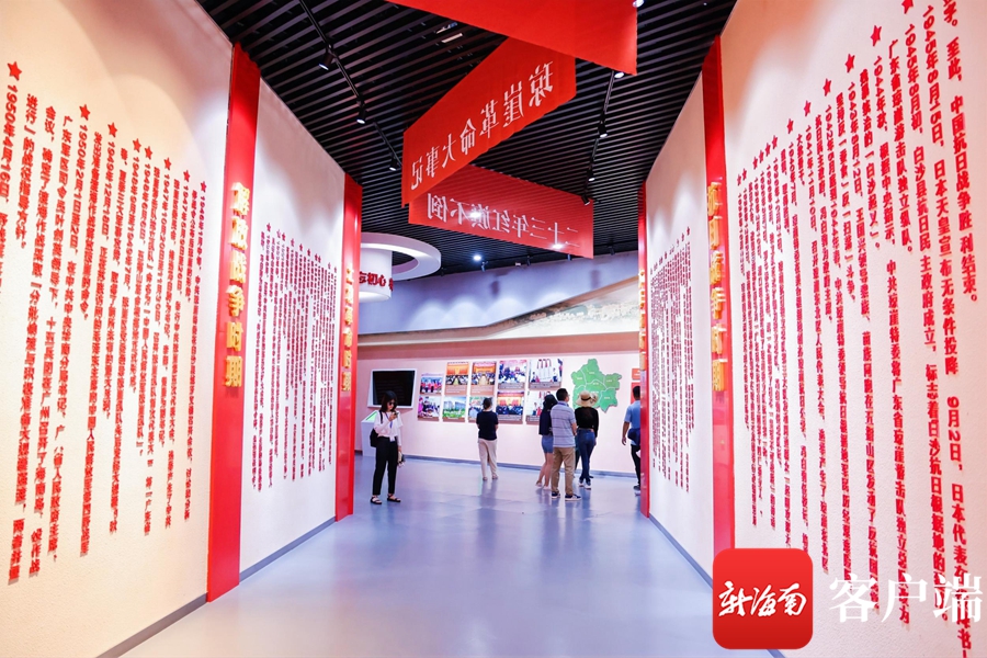 在何輝的引領下,來訪的全媒體采訪團移步五指山革命根據地紀念園陳列館。陳列館內,紅領巾講解員王欣怡接替講述,向大家介紹了20世紀中葉的五指山紅色歷程。隨后,講解員李瑞珍講述了解放戰爭時期,海南人民從椰子寨戰斗的一聲槍響到海南解放,瓊崖黨組織領導全島軍民經過23年艱苦卓絕、前仆后繼的英勇斗爭,最后配合野戰軍渡海作戰,終于取得了解放海南的偉大勝利。