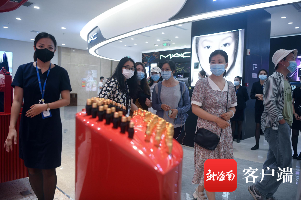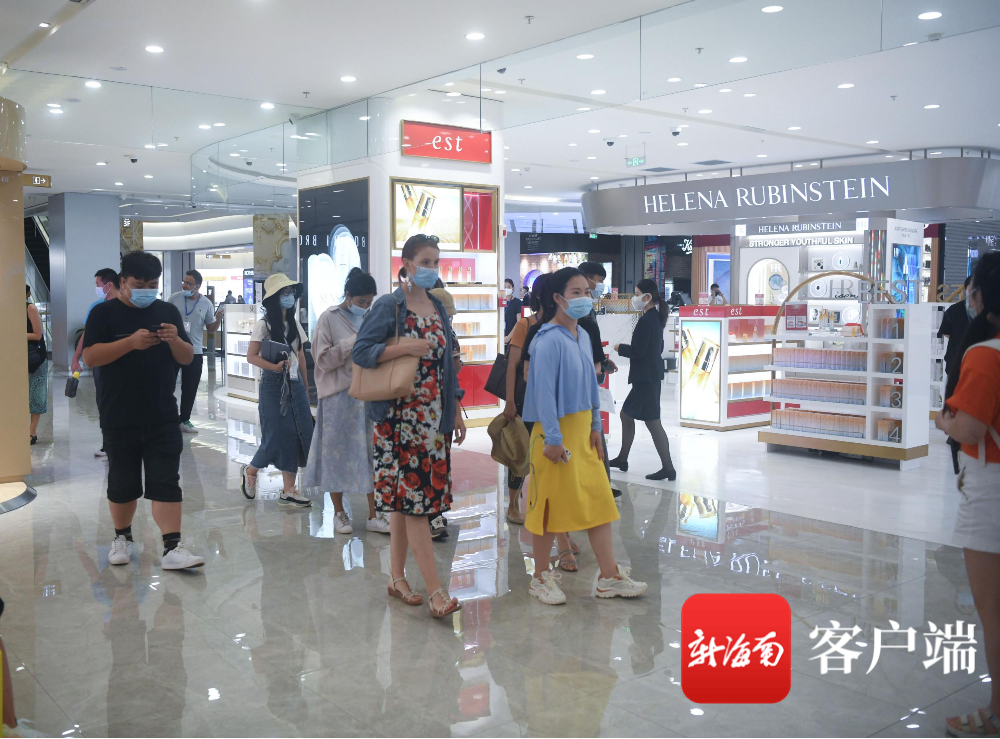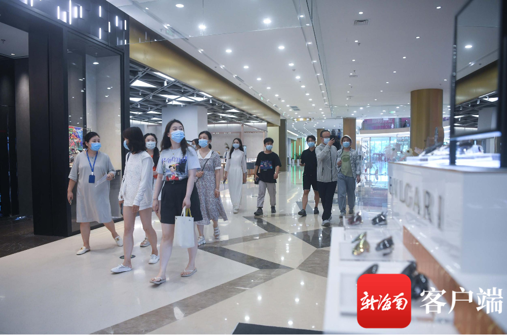 7月21日,參加“‘海南奮進 世界共享’——2021海南自貿港建設總體方案發布一周年全媒體海南行”活動的嘉賓來到三亞海旅免稅城,近距離感受這里的“自貿速度”。