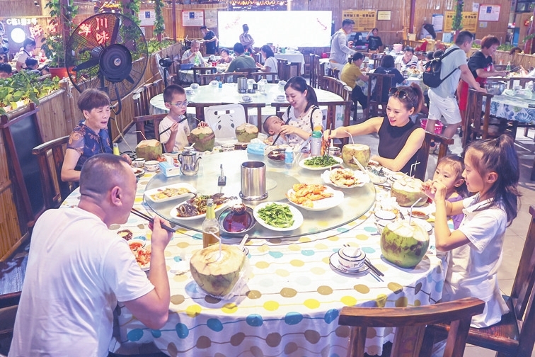 游客在東海龍宮海鮮城品嘗海鮮美食。 三亞日報記者 陳聰聰 攝