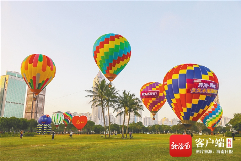 海口萬綠園,各種顏色的熱氣球緩緩升空。