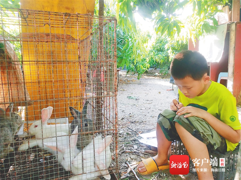 “7月6日,雨天,兔子們都沒有趴下,而是蹲著,真奇怪”“看到我拿著蔬菜走來,兔子們就會激動地跳起來”……這個暑期,周明錦記錄了兔子進食、嬉戲、休息時的狀態。這份特殊的暑假作業需要花費許多時間和精力,但他卻樂在其中。