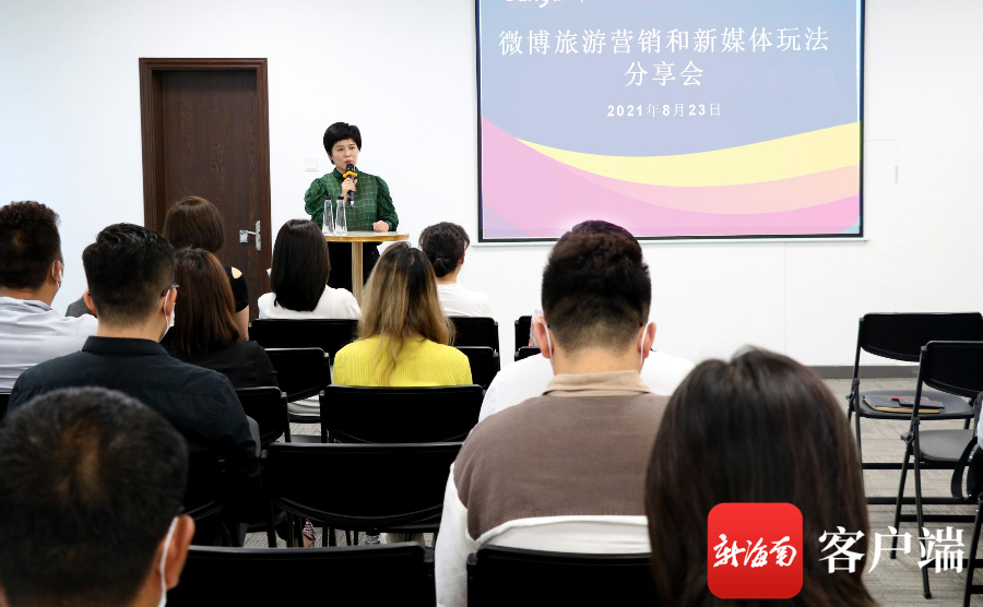 新海南客戶端、南海網、南國都市報8月24日消息 (記者沙曉峰)為適應文化旅游網絡宣傳營銷新形勢發展需求,8月23日下午,三亞市旅游推廣局組織開展微博新媒體玩法和旅游營銷分享沙龍活動。本次活動特邀新浪旅游&微博旅游主編、新浪全國高級講師李一毛和新浪海南同城運營主編王琦凡,聚焦微博新媒體玩法和旅游營銷分享,通過主題分享和交流,借助后疫情時代恢復期,苦練內功,提升能力,迎接三亞旅游旺季的到來打下良好的基礎。三亞市重點涉旅企業近40位品牌營銷人員參加了本次培訓沙龍活動。