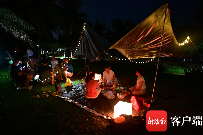 新海南客戶端、南海網、南國都市報9月21日消息(記者 陳衛東)9月20日,中秋假期第二天,到海口假日海灘、五源河等旅游風景區賞月觀海游玩的市民游客非常多,假日海灘露天燒烤園也是座無虛席,非常熱鬧。觀海臺,幾個滑翔傘愛好者在一次次嘗試從岸邊高臺,迎風起飛。西海岸綠化帶上,人們在海邊樹林支起帳篷,掛上彩燈,和天上的月亮遙相呼應。